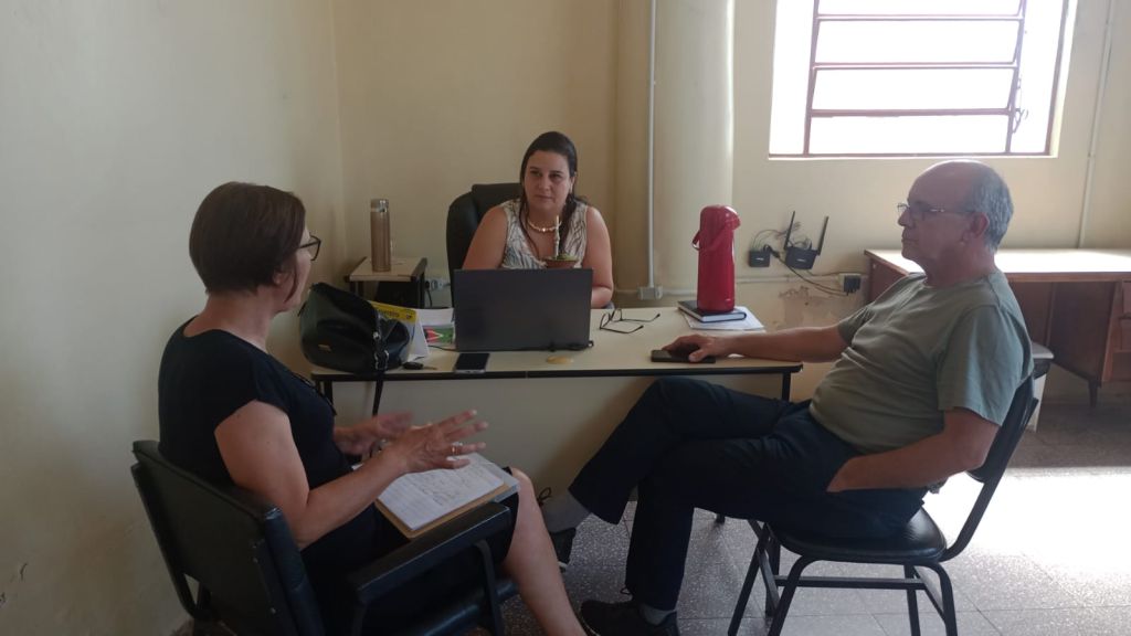 Antes da reunião, às 8h da manhã, a equipe também realizou uma visita à Feira do Produtor Rural, na Praça Benjamin Batista Lorentz, onde conversou com produtores locais sobre as expectativas das agroindústrias e as possibilidades de receber visitantes e ampliar a divulgação e comercialização dos produtos locais.