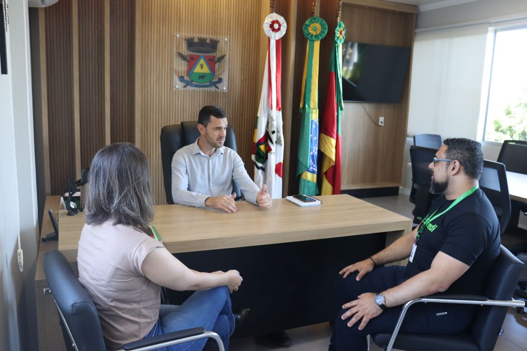 Na manhã desta segunda-feira, 13 de abril, o prefeito Cristiano Cassol recebeu em seu gabinete representantes do banco cooperativo Sicredi, em um encontro de cortesia e alinhamento institucional.